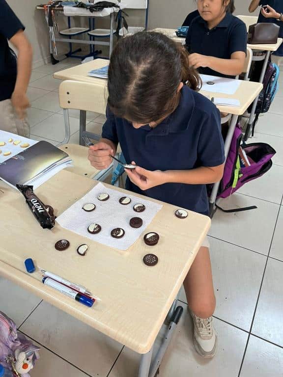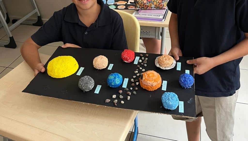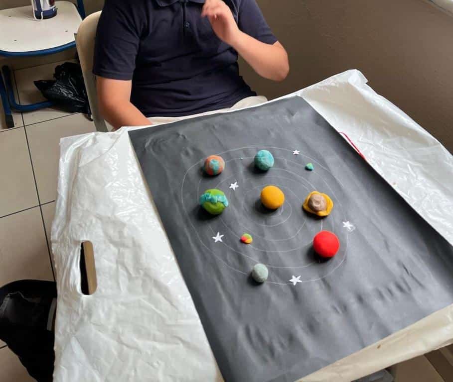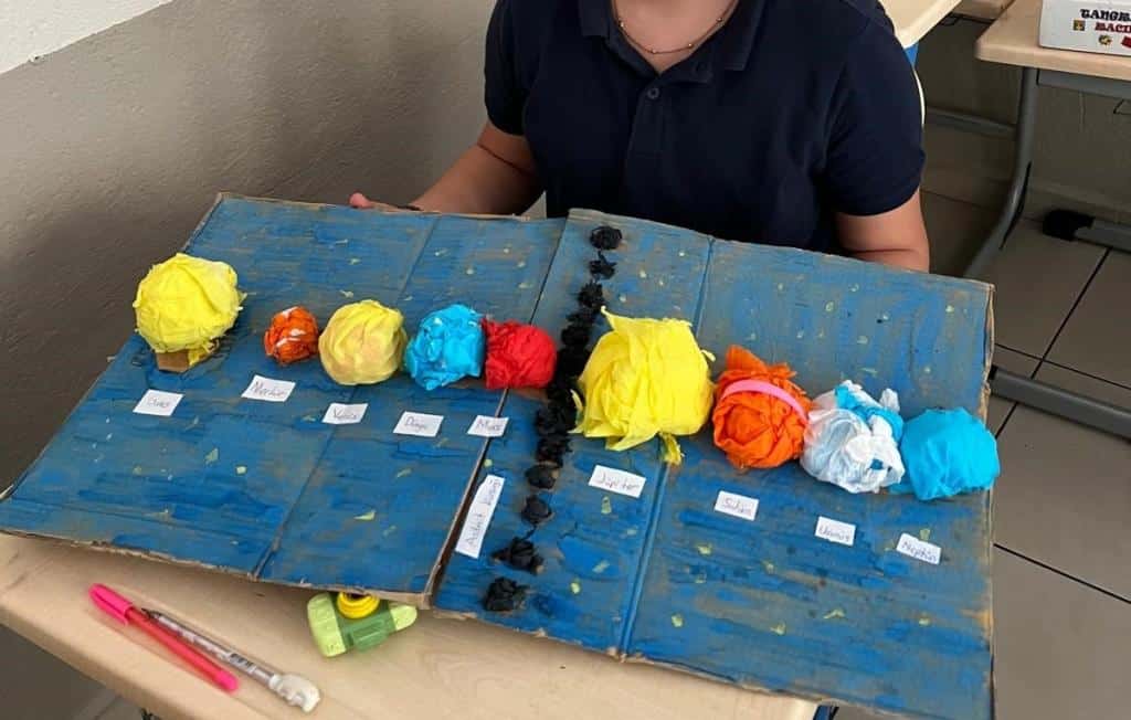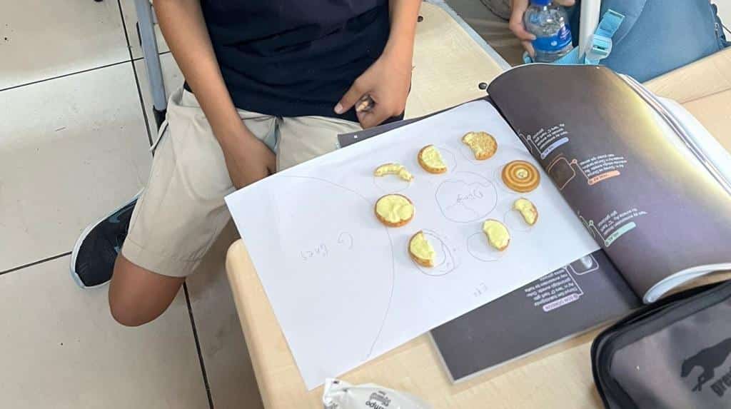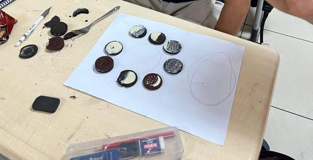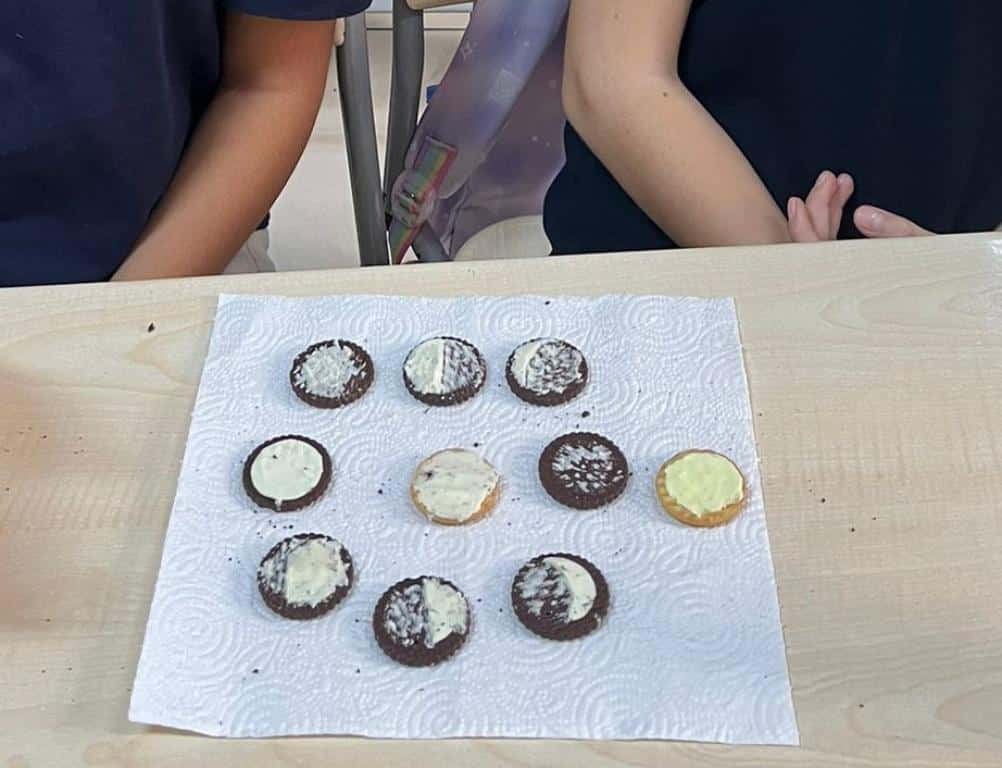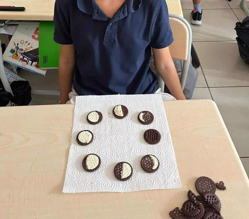 Okulumuzda 5. ve 6. sınıf öğrencilerimiz, Fen Bilimleri dersinde Ay’ın evreleri ve gezegenler konusunu pekiştirmek amacıyla hem eğlenceli hem de öğretici bir etkinlik gerçekleştirdi. Öğrencilerimiz, hazırladıkları maketlerle gezegenleri tanıma fırsatı bulurken, bisküvilerden oluşturdukları Ay’ın evreleri modeli ile konuyu daha kalıcı şekilde öğrendiler.